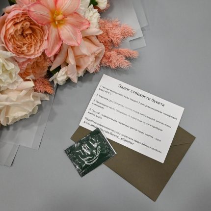 Букет с тюльпанами, пионовидными розами,матиолой,эустомой и альстромерией