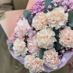Диантус – 9 шт.Гипсофила – 2 шт.Эвкалипт – 2 шт.Упаковка дизайнерская – 1 шт.