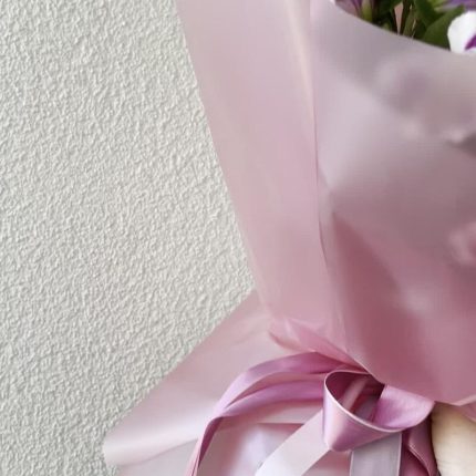 Эустома – 5 шт.Лента атласная – 1 шт.Упаковка матовая пленка – 1 шт.