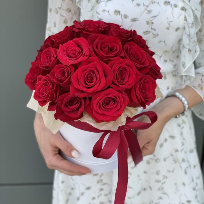 Метки: 25 роз, Красные розы, от 4000 до 5000 руб, Роза 30 см, Розы в коробке, цветы в коробке
