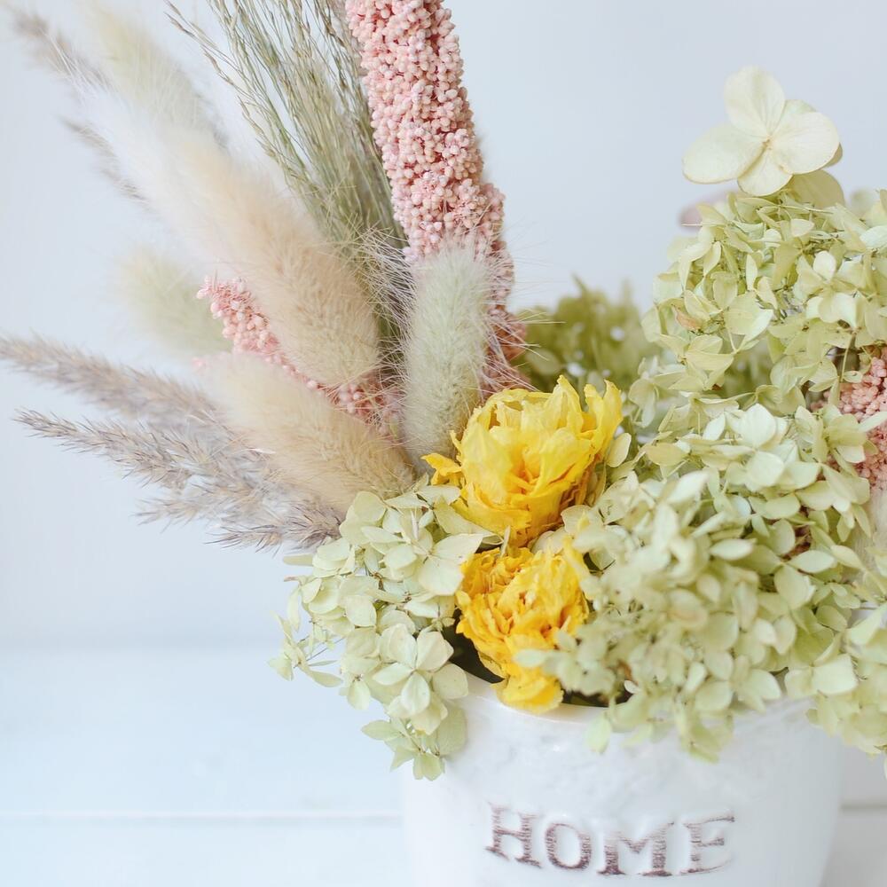Интерьерная композиция из стабилизированных цветов и сухоцветов